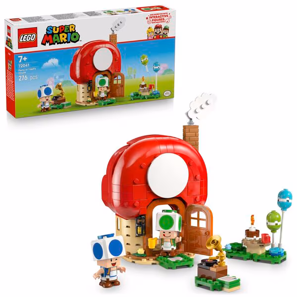 Haal de ballonnen en taart tevoorschijn voor een vrolijk feest in het huisje van Toad met LEGO Super Mario 72041 Toads Huisfeestje speelset voor kinderen vanaf 7 jaar.